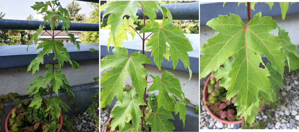 Voriges Jahr hat in einem meiner Planzgefäße auf der Terrasse ein Bäumchen ausgetrieben. Ich hab es wachsen lassen. Könnten Sie mir eventuell sagen um welche Ahorn-Art es sich handelt. Ich kam zuerst auf Zuckerahorn, aber die Blattform ist etwas anders. Eher länglich. Vielleicht ein Rot-Ahorn?